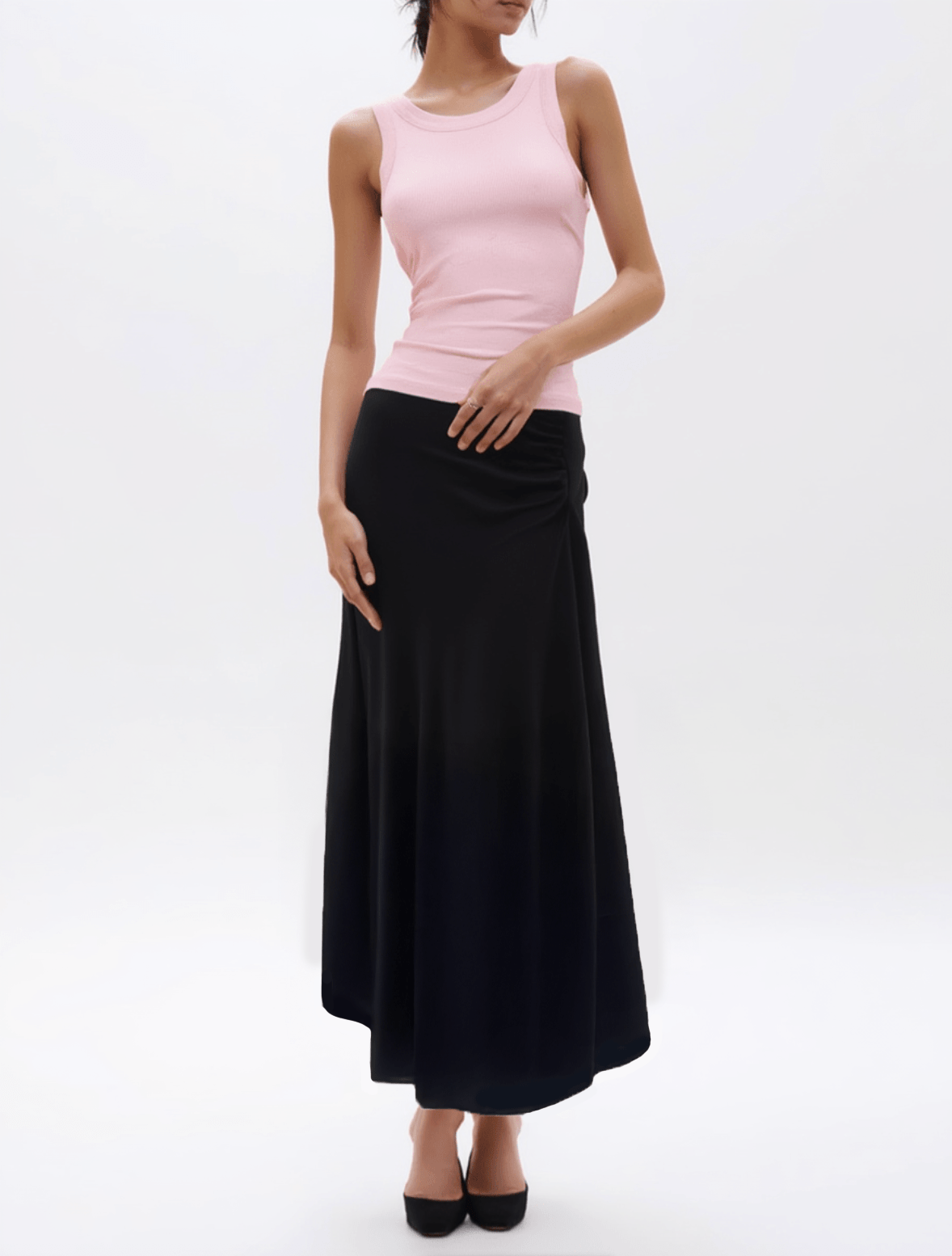 Dieses Etui-oberteil überzeugt mit seiner weichen, elastischen Struktur und einer klaren, figurnahen Silhouette. Der klassische Rundhalsausschnitt und die feine struktur verleiht dem Design eine moderne, feminine Note. Dank der angenehmen Materialqualität eignet sich das Top ideal für warme Tage oder als vielseitiges Layering‑Piece unter Blazern, Strick oder Jacken. Ein zeitloses Basic, das sich mühelos in jede Garderobe integrieren lässt.