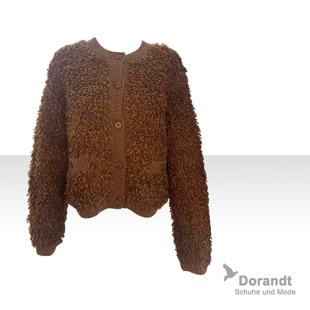 Strickjacke in Braun mit Knopfleiste und Eingrifftaschen