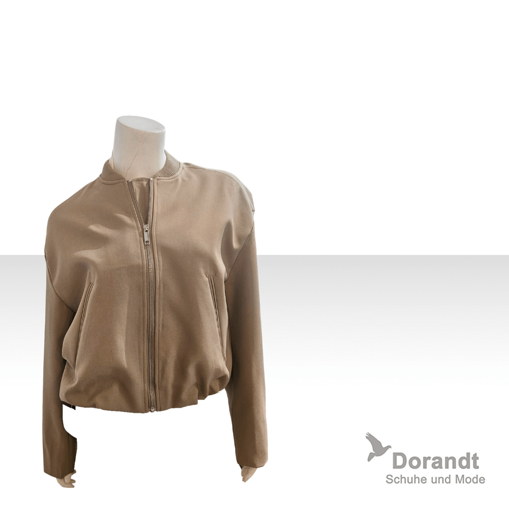 Diese Bomberjacke kombiniert eine klare, minimalistische Silhouette mit sportlich‑eleganten Details. Der durchgehende Reißverschluss, der gerippte Kragen sowie die passenden Bündchen verleihen dem Design Struktur und einen modernen Touch. Die seitlichen Eingrifftaschen sorgen für Funktionalität, während die leichte Materialqualität die Jacke zu einem idealen Begleiter für Übergangstage macht. Ob zu Röcken, Hosen oder Kleidern — dieses Modell fügt sich mühelos in jede Garderobe ein und rundet Casual‑Looks stilvoll ab.