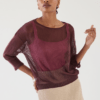 Dieses bordeauxfarbene Top kombiniert ein transparentes, fein geripptes Longsleeve für ein harmonisches, modernes Styling. Die leichte Transparenz des Oberteils sorgt für Tiefe und einen eleganten, modischen Effekt. Die weiche Struktur und der lockere Fall verleihen dem Look eine feminine Leichtigkeit. Perfekt zu Röcken, Hosen oder als stilvolles Statement‑Piece für Alltag und besondere Anlässe.