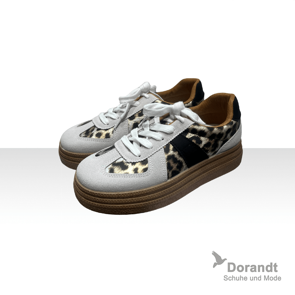 Sneaker mit auffälligem Leo-Print und kontrastierendem schwarzem Streifendetail