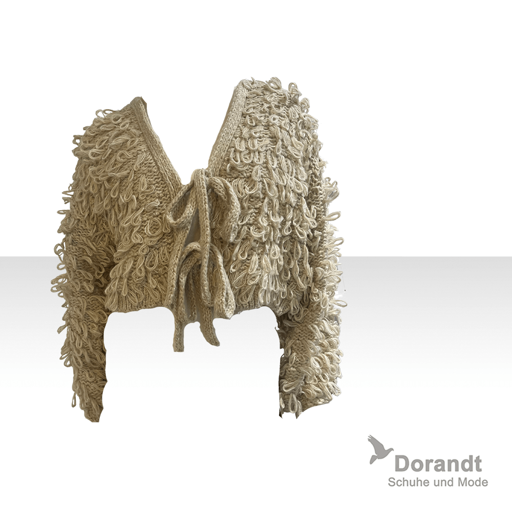• Auffällige Strickjacke mit Fransenstruktur und Bindeschleife