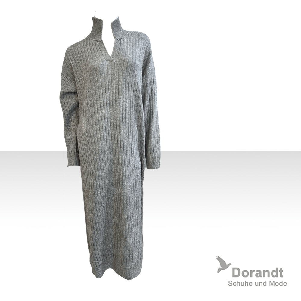 • Langes Strickkleid in Grau mit Rippenstruktur