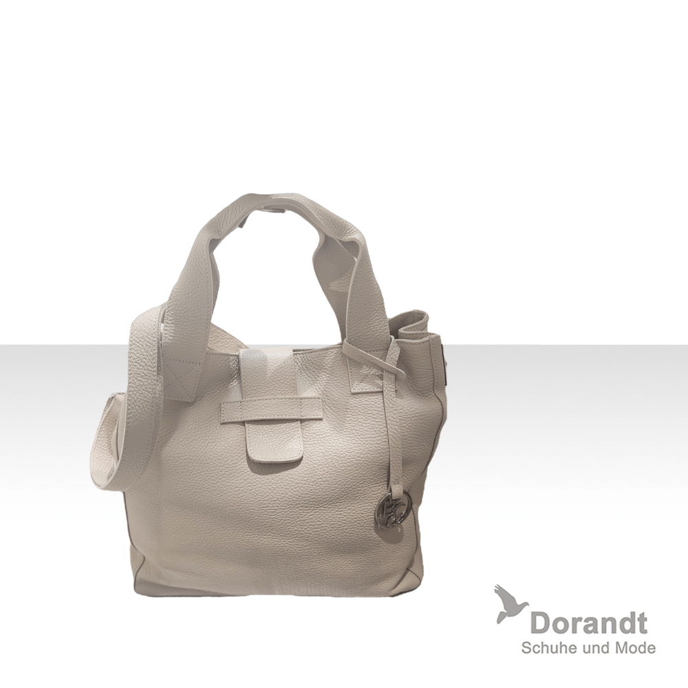 Tasche aus genarbtem Leder, geräumiges Innenleben und eingesetzter Zusatztasche.